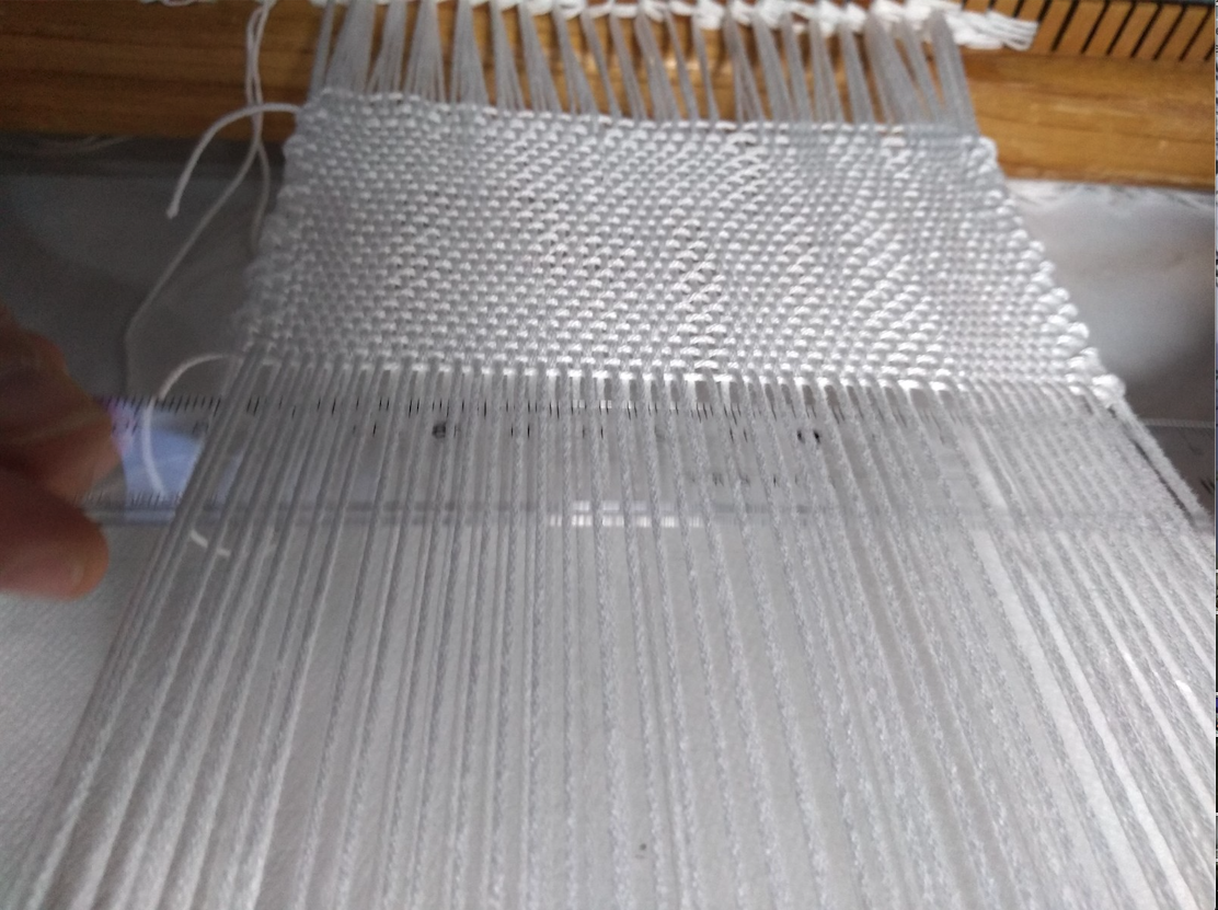 Allí tuve la oportunidad de enseñar la dinámica de tejer los patrones en telar de peine.